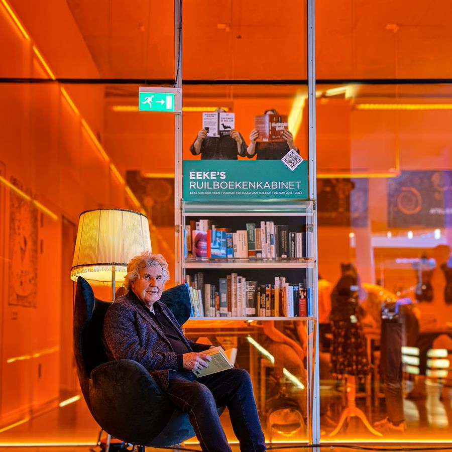 Het hoofdstuk raad van toezicht is afgesloten, maar Eeke is nog lang niet uitgelezen. Eeke van der Veen was voorzitter van de raad van toezicht van DE KOM van 2015 tot 2023. Als kerstcadeau gaf Eeke de raad van toezichtleden altijd een boek, zij konden dan kiezen uit een lijst met zijn favorieten. Om Eeke te danken voor zijn jarenlange inzet en hem op passende wijze uit te zwaaien na het aflopen van zijn statutaire termijn, is Eeke's ruilboekenkabinet geïnstalleerd. Eeke is hier bijzonder trots op. Hij is van plan nog regelmatig binnen te komen lopen in DE KOM om te ruilen. Maar eerst is hij nog druk met het uitlezen van de boeken die hij bij zijn afscheid cadeau heeft gekregen. Zelf ook ruilen? Eeke's Ruilboekenkabinet is in de entreehal rechts naast de garderobe te vinden. KOM boeken ruilen!